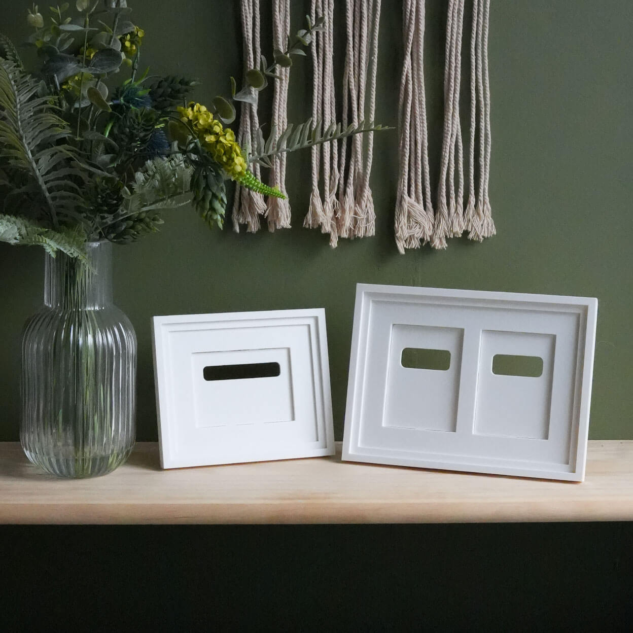 We’ve designed our frames with snap-fit backs and stands, allowing you to easily switch the frame style whenever you like. Stick on a fridge? Easy. Switch to a standing frame for the desk? No problem!