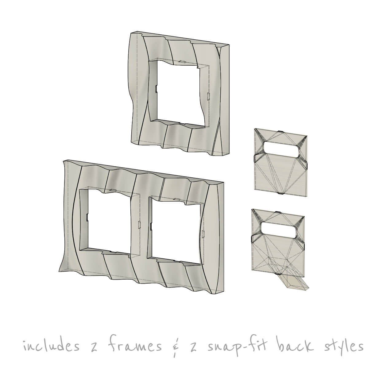 The STL files for our collection of wavy frames, allowing you to print the model with a 3d printer for both personal and commercial use.